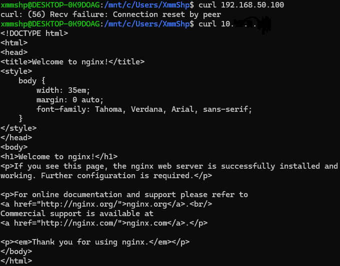 而且这种错误非常隐蔽。。其他设备访问192.168.50.100时,ping可以通,curl结果是 Connection reset by peer,然后去看 nginx 的日志,发现状态码是499,光看日志还以为是 nginx 配置问题。